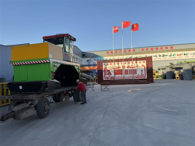 有機肥設備廠家為張家口用戶打造的3米有機肥履帶翻拋機準備出發:履帶翻堆機采用履帶行走占地少、轉彎靈活、可以原地掉頭、提高物料堆放場地利用率。機器整體結構合理,整機剛性好、受力平衡、簡明、結實、易操控、對場地適用性強,除粗壯的機架,零部件均為標準件,使用維護方便。行駛中整車騎跨在預先堆置的長條形肥基上,由機架下掛裝的旋轉刀軸對肥基原料實施翻拌、蓬松、移堆,車過之后成新的條形垛堆。在翻拋過程中,物料被高速旋轉的滾筒帶起并向后移動一定的距離所以在翻拋過程中,翻拋機可對物料打散、粉碎,并帶走部分水分。